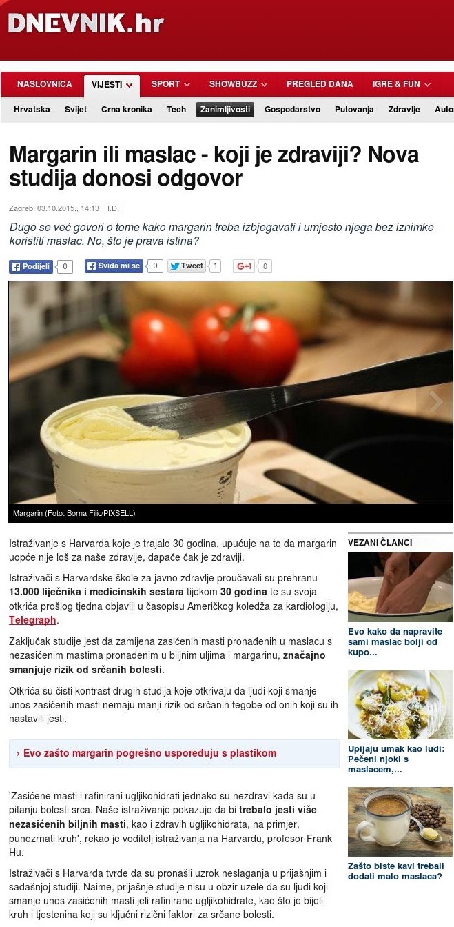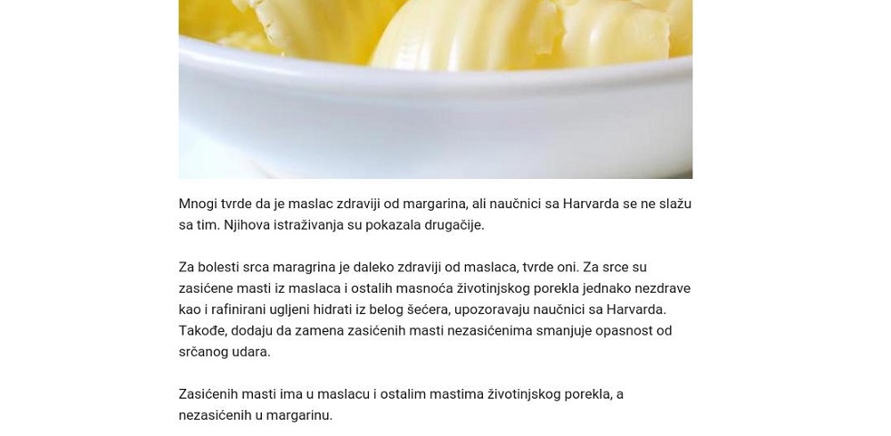 portalima, a zatim su priču odmah preneli i drugi portali. Kao i obično, gomila nesrećnika je odmah počela da šeruje i lajkuje (dez)informaciju kako je margarin je bolji za srce od putera.