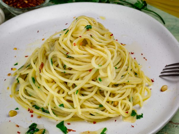 U to ime, radim Spaghetti aglio e olio na takav način da možda nije perfekcija – ali zbog ovog recepta ni jedan italijanski šef neće poželeti da me juri s motkom ili oklagijom oko zgrade 🙂 Kad pređete ceo recept i odlučite da spremate, vi svakako dodajte šta hoćete od sastojaka, zovite ga kako hoćete – ali se držite postupka pripreme.