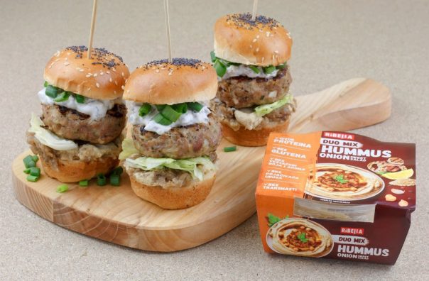 Prvi put kad sam degustirala Ribella Sweet Onion Salad bila sam na njihovom štandu, na konferenciji Pro Femina 2017 i sa kolumnistkinjom magazina “Lepota&Zdravlje”, Dudom Alapačom, spremala jela s humusom. Imala sam ideju da na prezentaciji taj ukus stavim na pljeskavicu i kažem: “Sada znate da humus može da bude klopa i za mačo-muškarce” 🙂