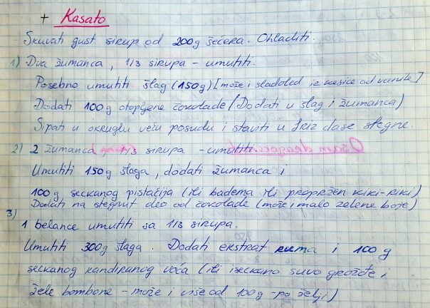 Kako je leto počelo, poželela sam da imate ovaj – a ja i dalje čuvam te dve sveske, pa možda nešto ponovo izvučem iz njih 🙂 Svakako, imajte u vidu da procedura pripreme ovog sladoleda nije onakva kako biste pripremali pravi domaći sladoled, već je sve prilično pojednostavljeno.