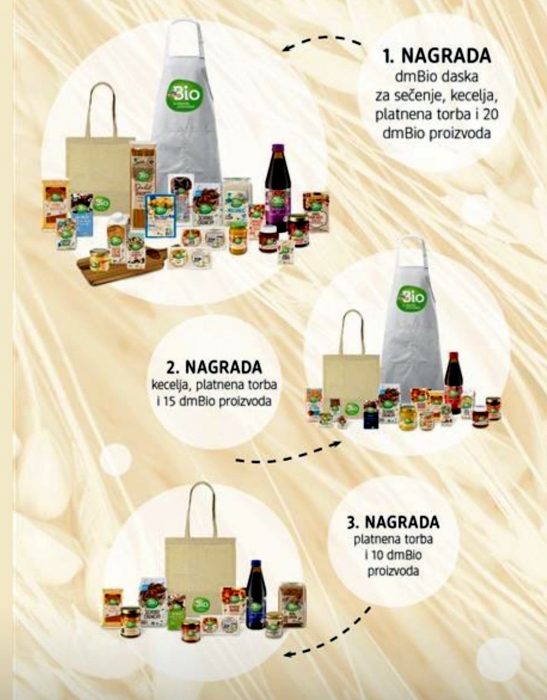 Sve detalje konkursa, kao i tačan spisak proizvoda iz organskog dmBio programa koji će se naći u poklonima pobednika konkursa pogledajte u Pravilnku konkursa.