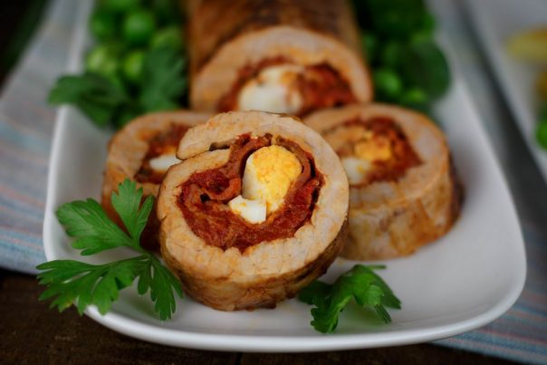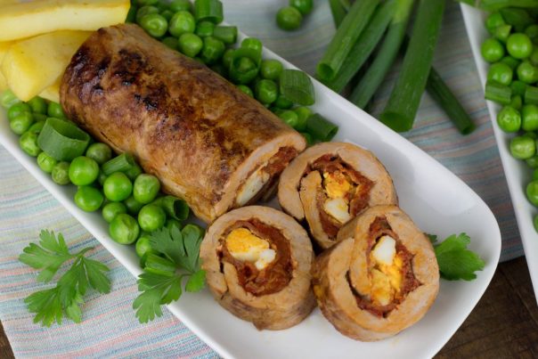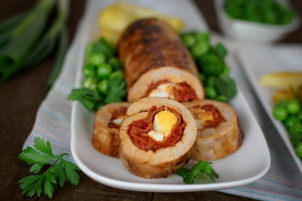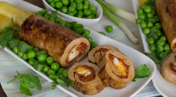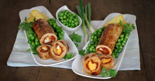 Umotajte i učvrstite ili koncem ili aluminijumskom folijom. Možete da pržite u tignju (oko 15 minuta je potrebno) ili da pečete u rerni. Ja sam radila verziju folija+tiganj. Nakon termičke obrade, neka rolnice odmore oko 10-15 minuta i mogu da se serviraju s povrćem.