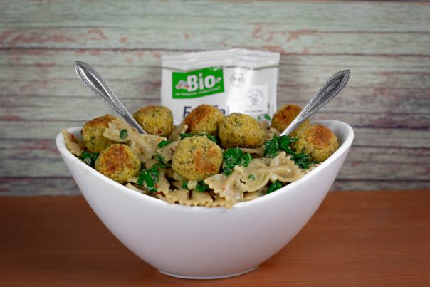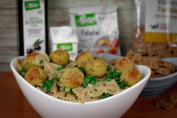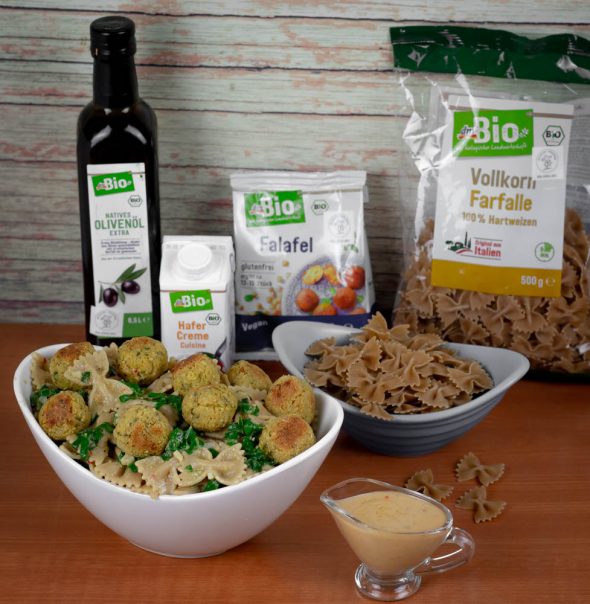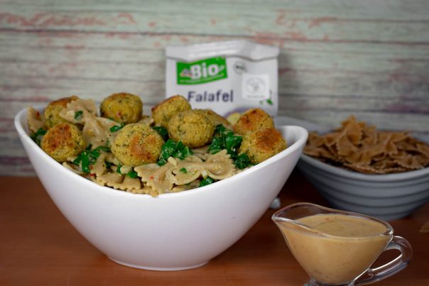Zbog popularnosti bliskoističnih sastojaka i jela, kakvi su falafel i humus – a i zato što sam veliki ljubitelj leblebije – napravila sam jelo koje je fantastičan miks falafela & sosa na bazi humusa. Sve sam servirala s organskom integralnom testeninom iz dm-a. Svakako, ako ste neko ko je na dijeti s manje ugljenih hidrata, možete falafel uz sos da servirate preko karfiola skuvanog na pari. Probala sam i to, verujte mi da je super kombinacija 🙂