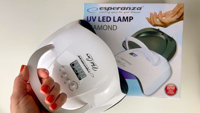 Ako ste od onih koji su se malo provežbali, pogotovo ako je to bilo kod drugarice, pa još uvek nemate svoju lampu – krenite odmah s nešto jačom lampom. Ja sam sa jačine 48W prešla na jačinu 80W. Vreme sušenja nisam menjala (baza 30 sekundi, prva boja 60 sekundi, druga boja 60 sekundi, završni lak 60 sekundi) – ali vidim da sa istim vremenom lak na noktima duže traje. Moja nova lampa s Bazzar.rs je ESPERANZA EBN005: