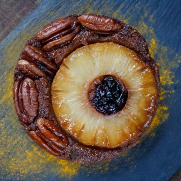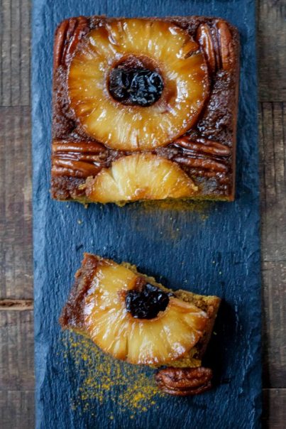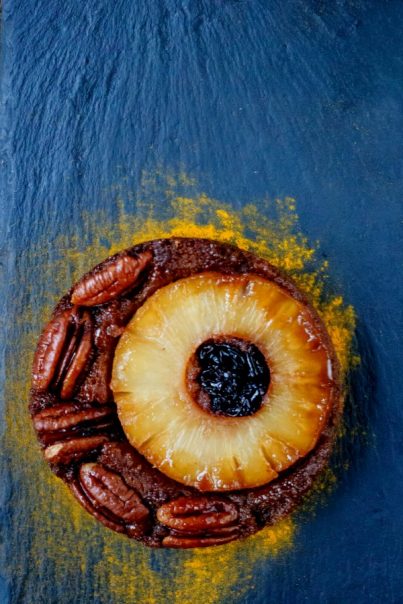 Naravno, pre toga kolač treba okrenuti da sloj od voća koji je stavljen prvi, bude gore – zbog čega je i dobio svoje ime 🙂 Inače, prve upside-down kolače zvali su “skillet cakes“, jer su se pravili u livenim tiganjima, negde početkom 19. veka, uglavnom s višnjama ili jabukama.