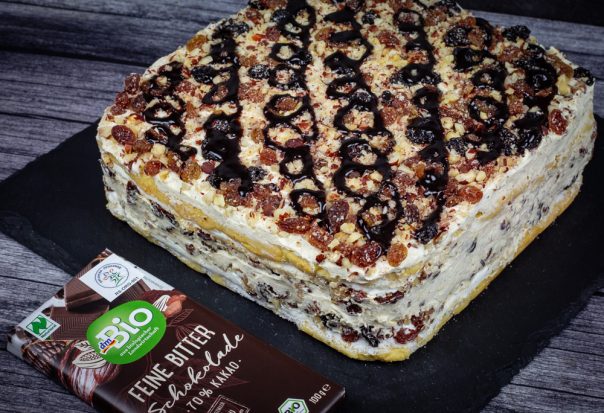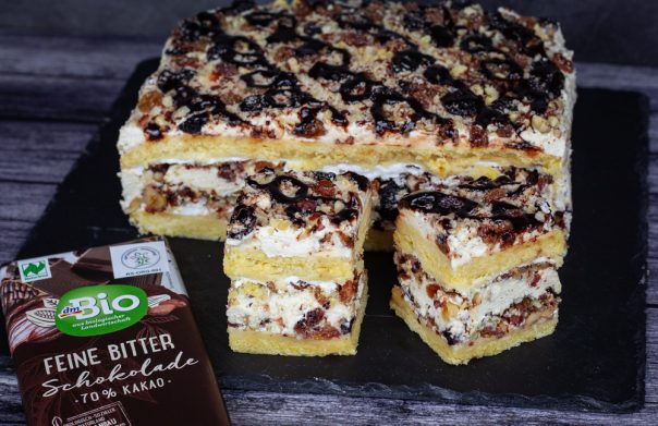 Htela sam ga za Uskrs, jer i moja porodica, i ja obožavamo mešavinu različitih tekstura u desertima, pogotovo ako su praćeni komadićima suvog voća i orašastih plodova koji krckaju kad se kolač zagrize. A u “dm drogerijama” imate prelepu kolekciju organskog dmBio suvog voća: suvo grožđe, šljive, kajsije, smokve, urme, brusnice, višnje… Ja sam ovaj put kolač radila s kombinacijom višanja i grožđa, ali mogu samo da zamsilim kakva bi bila kombinacija smokve i šljive, ili brusnica i kajsija.