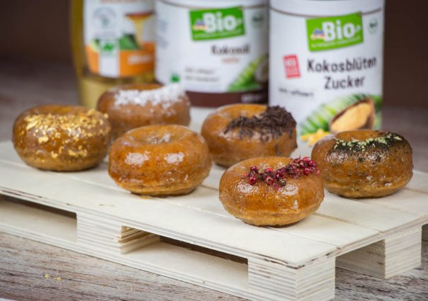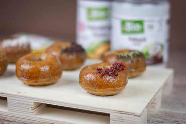 Rernu zagrejte na 170 stepeni. U činiji izmešajte sve suve sastojke: kokosov šećer, kokosovo brašno, tapioka brašno (ili skrob), zrna vanile i so. Dobro izmešajte pa dodajte i mokre sastojke: kokosovo mleko, kokosovo ulje, aromu ili koricu pomorandže i jaja. Nakon što dobro izmešate – nauljite kalup s dosta kokosovog ulja i rasporedite masu. Ovde imate za 12 krofnica.