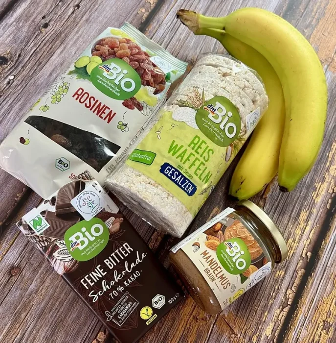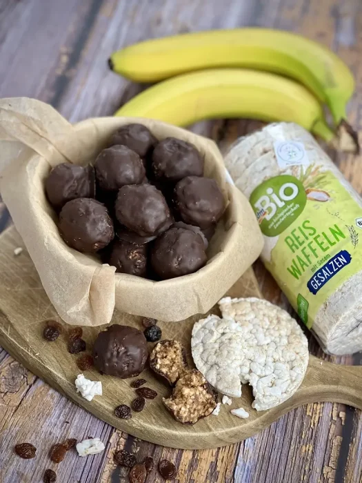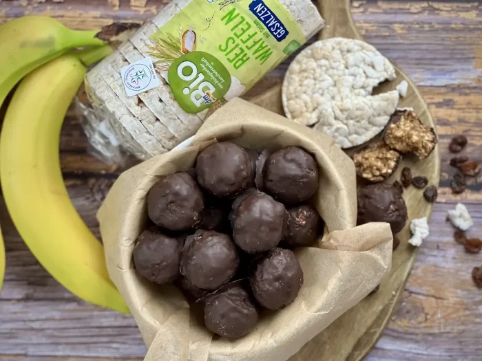 dmBio program nudi različite vrste galeta — pirinčane, kukuruzne i druge — koje se lako uklapaju u ovakve recepte i menjaju teksturu na način koji ih izdvaja od klasičnih “zdravijih” kolača. U kombinaciji sa bananom i namazom od badema dobija se masa koja je istovremeno kremasta i dovoljno čvrsta za oblikovanje. A ako nemate bademov namaz, on bez problema može da se zameni tahinijem ili nekim drugim dmBio namazom, u zavisnosti od ukusa koji želite da dobijete.