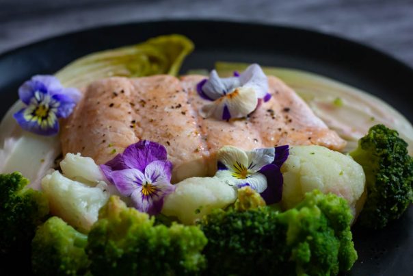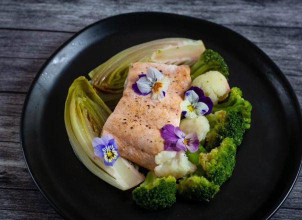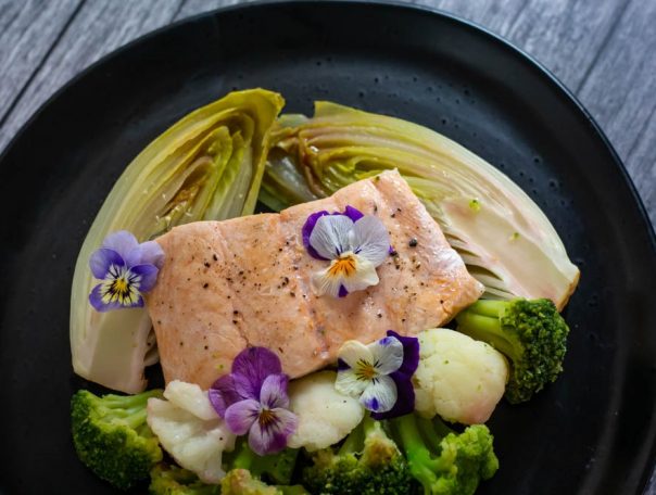 Ima određenih sugestija kako hrana kuvana na pari nije vizuelno privlačna – pa sam tekst nakitila fotkicama ovog mog tanjira na kome je losos, endivija, brokoli i karfiol. Sve je blago posoljeno, a povrće je začinjeno umeboši sirćetom i uljem od tartufa. Ako izdvojite minut vremena – i obična, “dosadna” hrana kuvana na pari može da izgleda lepo i dekorativno. Isto kao i bilo koja druga hrana.