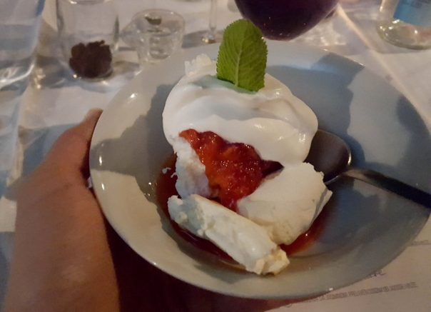 Poslednje jelo, pavlova s džinom i jagodama, bio je jestivi odgovor na Rose Omeyadde. Ruže iz Omejade i Damaska su najcenjeniji mirisi ruže u parfemima. Veče smo završili zamišljajući da grickamo puslice u nekoj oazi u pustinji, jer samo tamo rastu retke ruže, koje su glavni sastojak ovog mirisa.