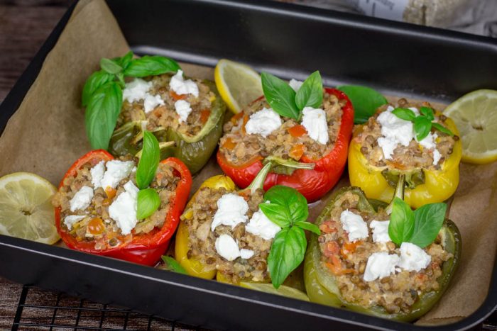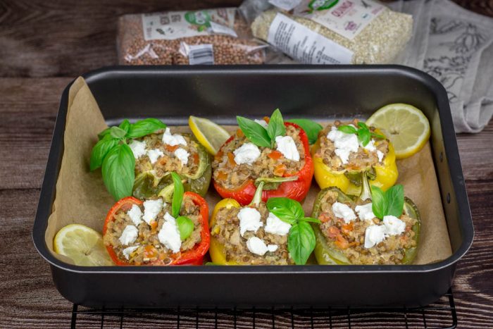 Punjene paprike bez mesa – sa sočivom, kinoom i fetom