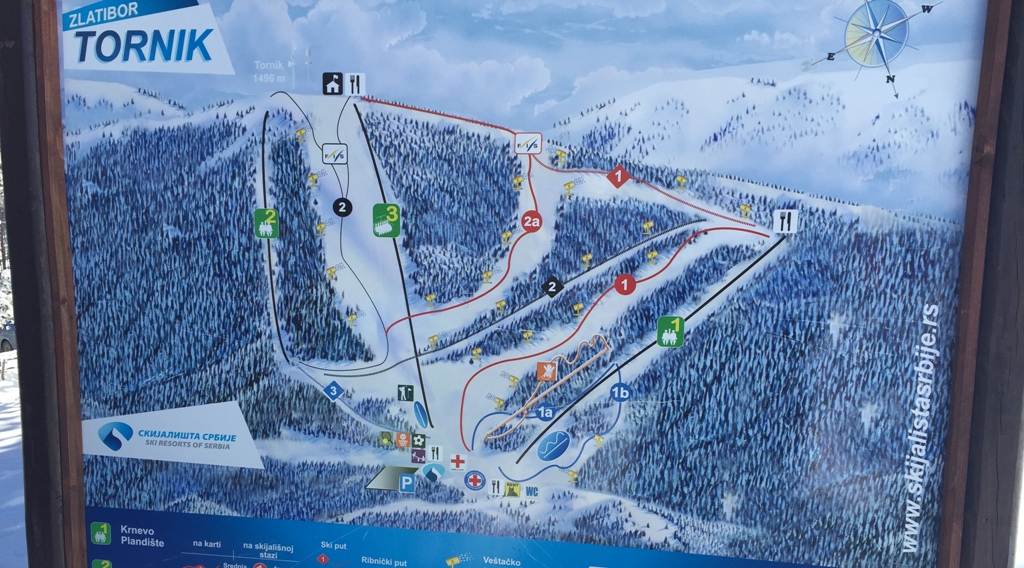 Kada se autobus parkirao na Torniku, zlatiborskom skijalištu, prvo što sam rekla bilo je: “Šta je bre ovo?!” Ispred mene nekoliko ski liftova, mapa sa više staza od kojih su neke i crne staze, šestosed ski lift, puno mesta za iznajmljivanje opreme, bob na šini za neskijaše, kafići za odmor i naravno – ski lift za “maliće”, koji izgleda kao ravna traka.