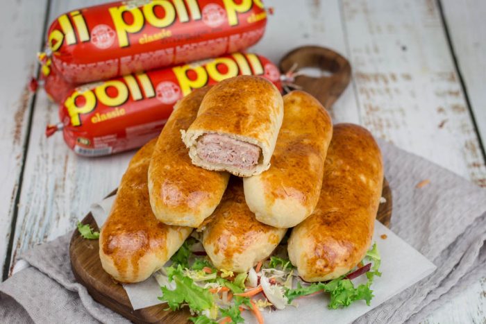 Brabants worstenbroodje bi bila neka vrsta kobasice od mesa umotane u testo za fino belo pecivo. Meso je najčešće crveno i intenzivnijeg ukusa. Ja sam ga zamenila filom od mlevene piletine (karabatak) i Poli kobasice (80% pilećeg mesa).