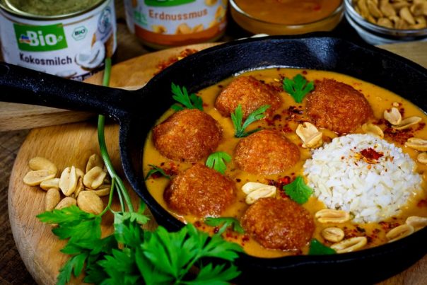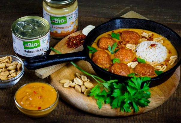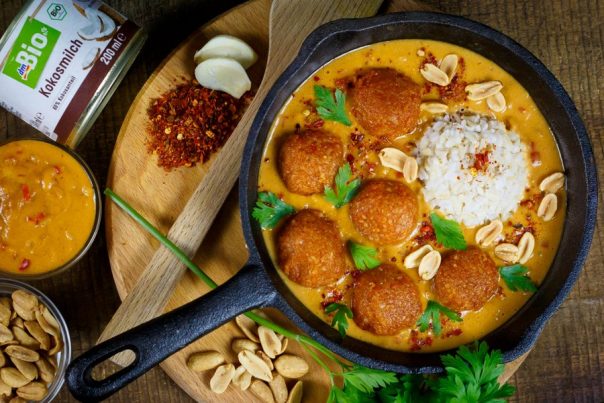 Ukuvajte sos nekoliko minuta. Gustina je dobra sa pomenutim #dmBio kokosovim mlekom i kikiriki puterom, pa ne morate da je korigujete vodom. Na kraju ubacite i ćuftice u sos i kuvajte još par minuta.