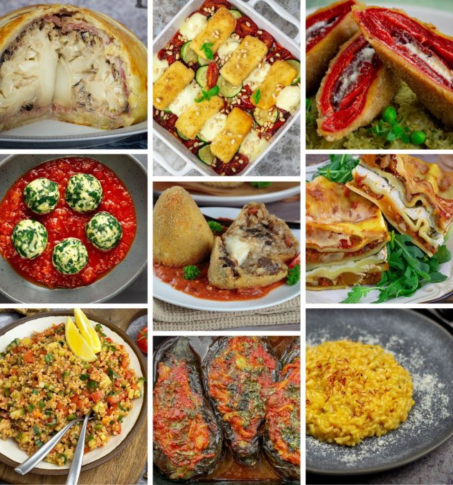 U poslednja dva recepta, kao sastojak navedeni su suhomesnati proizvodi – ali njih možete izbaciti iz jela, ako vam je potrebno da budu vegetarijanski. Zadržala sam ih u receptu, kako biste imali obe opcije. Takođe, u još jednom receptu, milanski rižoto – dat je originalni recept u kome se oristi koštana srž. Ovo je takođe sastojak koji može biti uklonjen kako bi se dobilo vegetarijansko jelo.