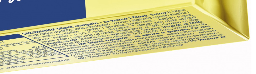 Ceo model služi samo da “poboljša način razmišljanja” o sastavu. Ne i kao tačan podatak koliko grama interesterifikovanih masti ima u ovom konkretnom margarinu, koji je za primer uzet tek onako, slučajno. Poredite brojke i sa drugim proizvođačima… ako nemate druga posla.