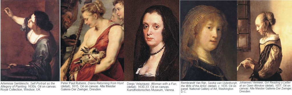 Umetnost u ovom periodu postaje dinamičnija, intenzivnija i teatralna – ali ostaje protkana realističnim izrazom. Žena – bila mlada ili stara, punija ili tanja – biva uvučena u intrigu između svoje snage i nežnosti. Artemisija Gentileči, slavljena ženska slikarka ovog perioda slika samu sebe dok radi – gipku i ženstvenu, dok se njen pobunjenički duh istovremeno primećuje na slici.