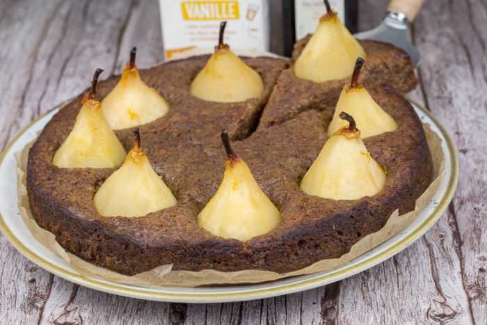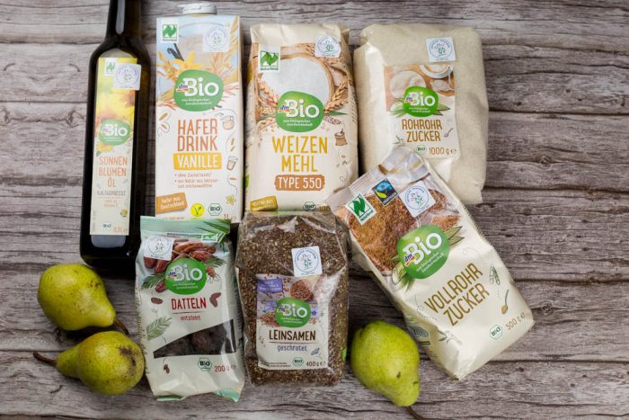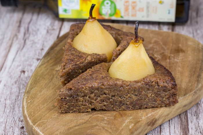 Korišćeni su organski dmBio proizvodi: ovseni napitak s vanilom, laneno seme, tamni šećer od šećerne trske, urme… Zahvaljujući tome, ovaj desert ima stvarno poseban ukus koji odiše aromama jeseni 😊 Začini predstojeće sezone: cimet, kardamom i karanfilć – savršeno se uklapaju sa slatkoćom urmi i bogatom aromom poširanih kruški.