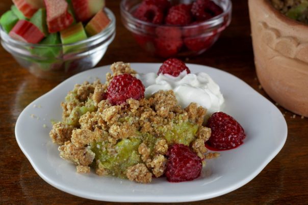Prvi put kada se rabarbara pojavila kod nas, napravila sam crveno-zeleni tart u koji sam ubacila jagode i matcha čaj. Sada, kada mi je drugi put pala šaka, rešila sam da napravim krambl (Crumble).
